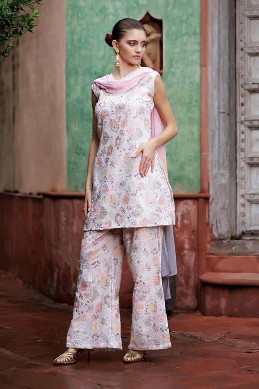 Ivory Bloom Festive Sharara Ensemble