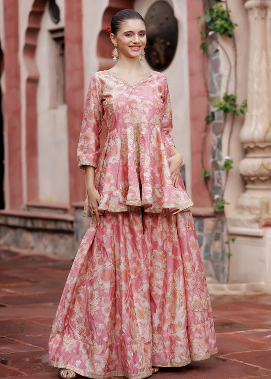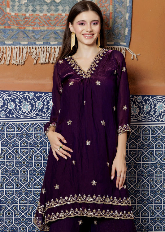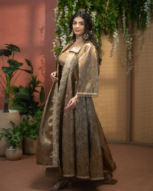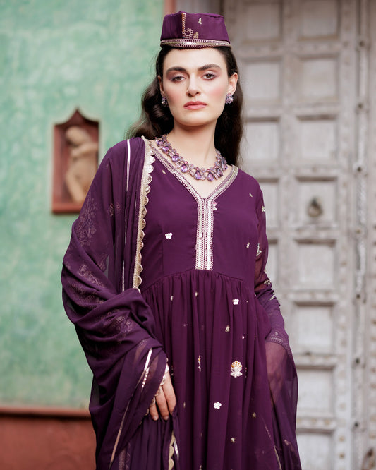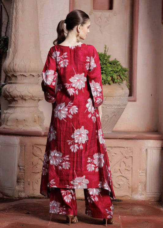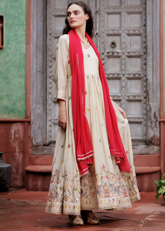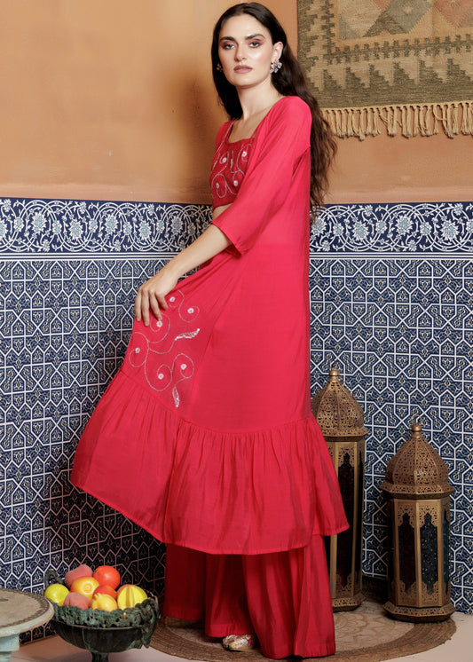 Red organza Indo-Western jacket with dramatic ruffle detailing
