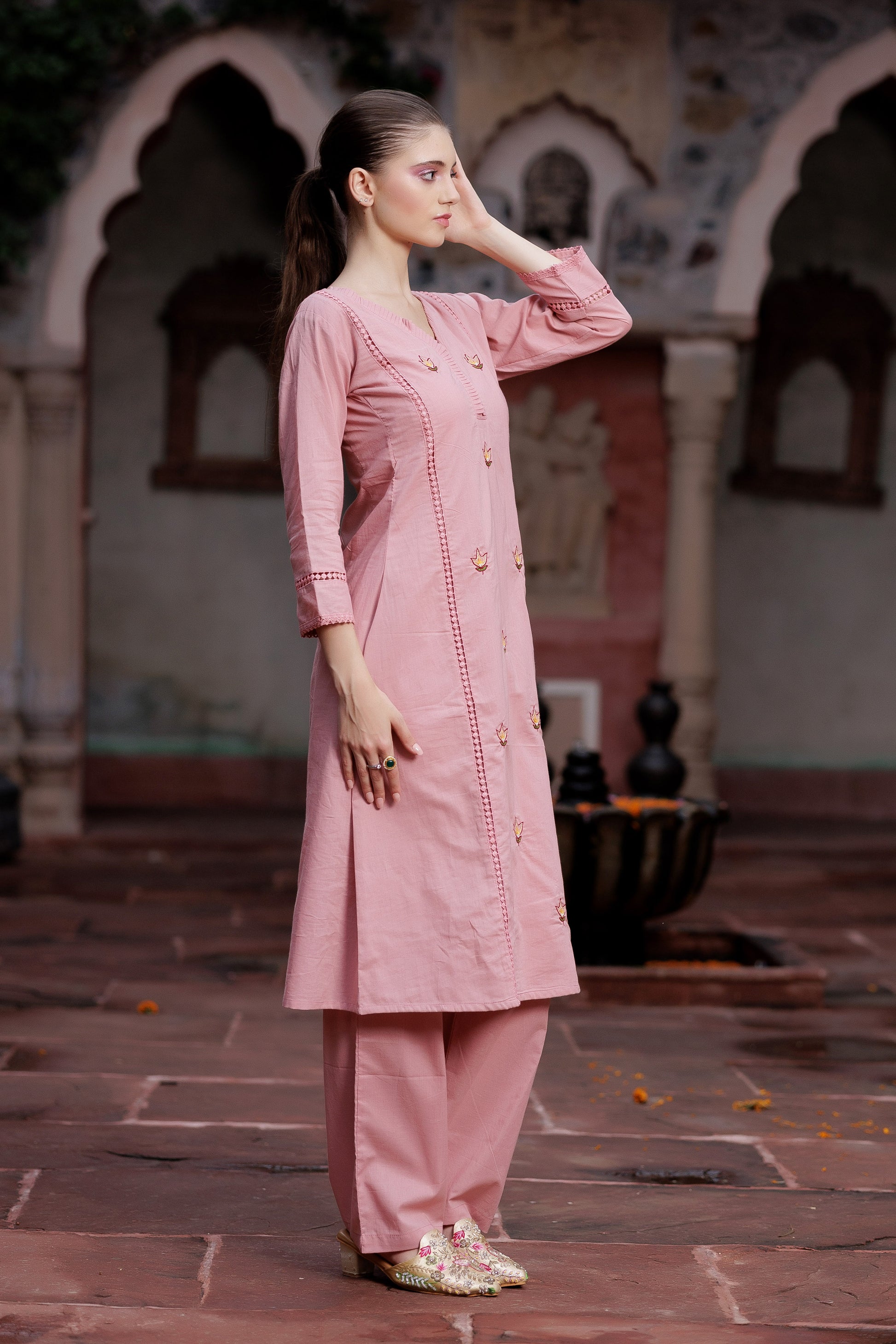 Blush Pink Hand-Embroidered Suit Set