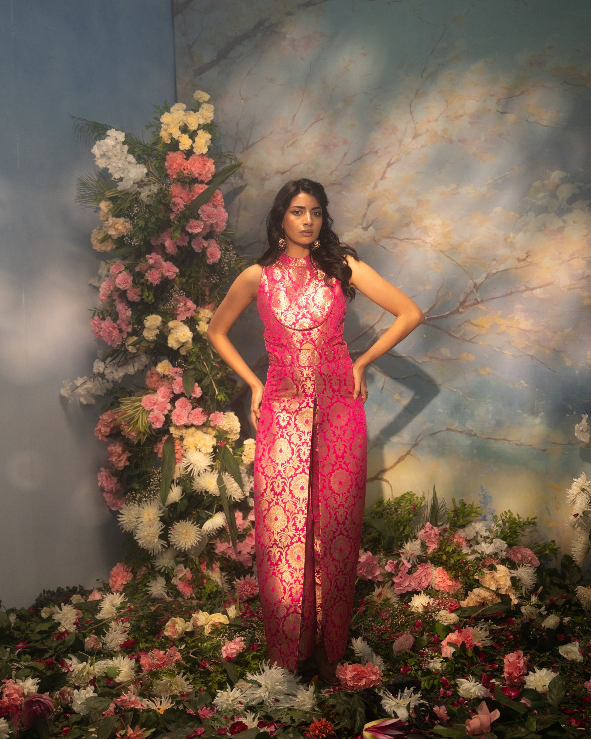 Brocade Indo-Western halter-neck jumpsuit