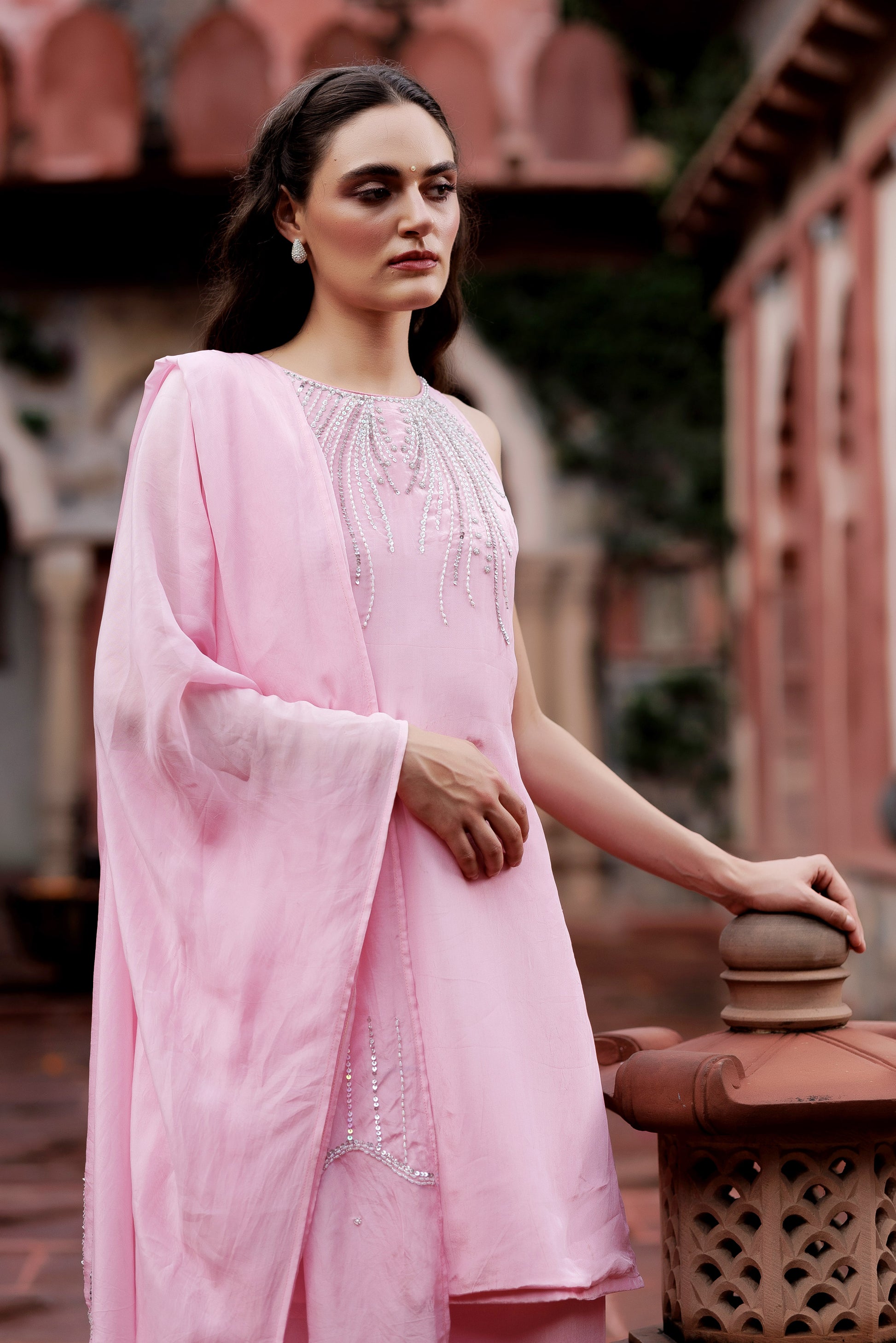 Noor Pink Embellished Indo-Western Set