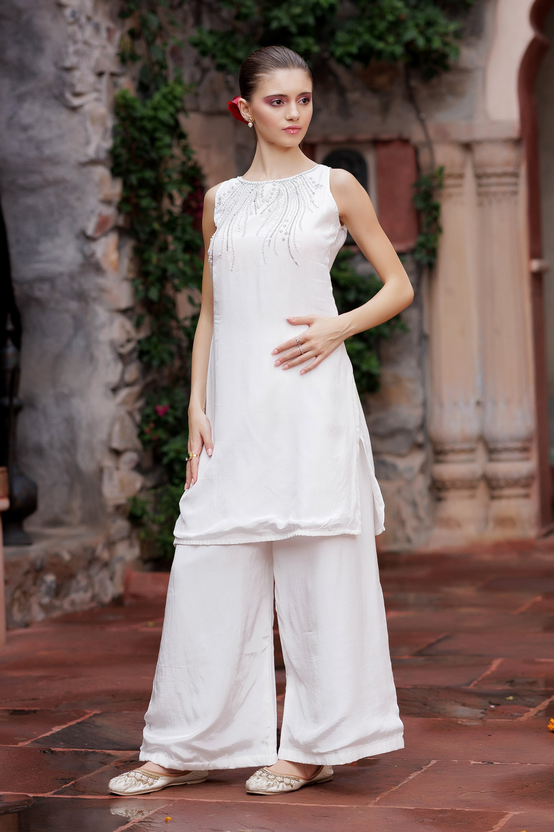 Noor White Embellished Indo-Western Set
