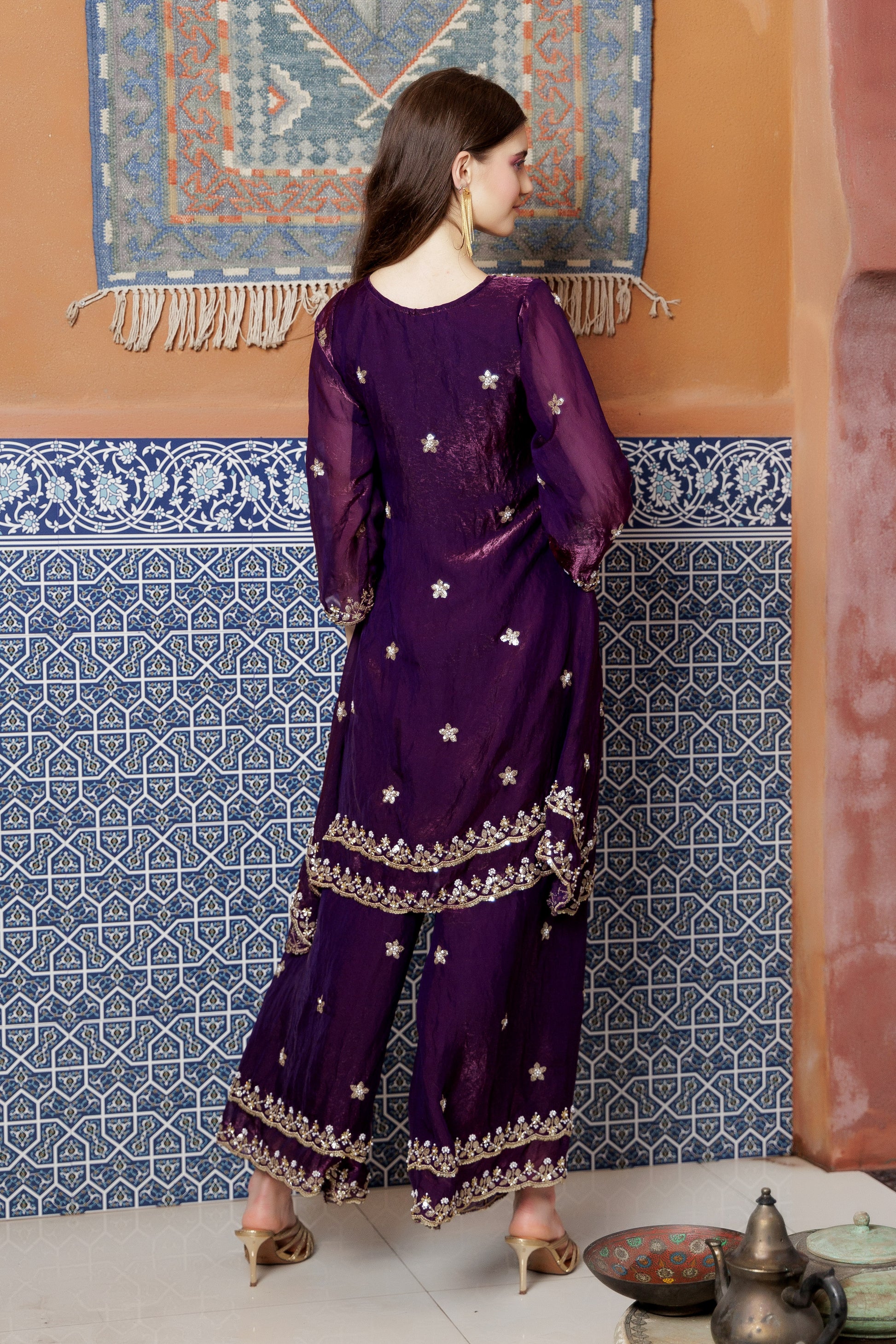 Purple Majesty Zari Sharara Set